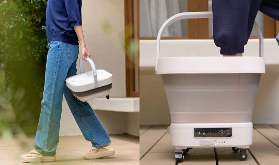 複雑な配線・水道接続は一切不要。充電式内蔵バッテリーと給水タンクを備えているため、水さえあれば、電源コードも水道ホースも気にせず、すぐにどこでも洗浄を始められます。