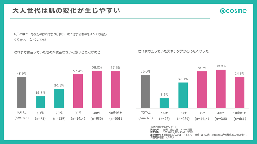 大人世代の肌変化(『@cosme』調べ 調査地域:全国)