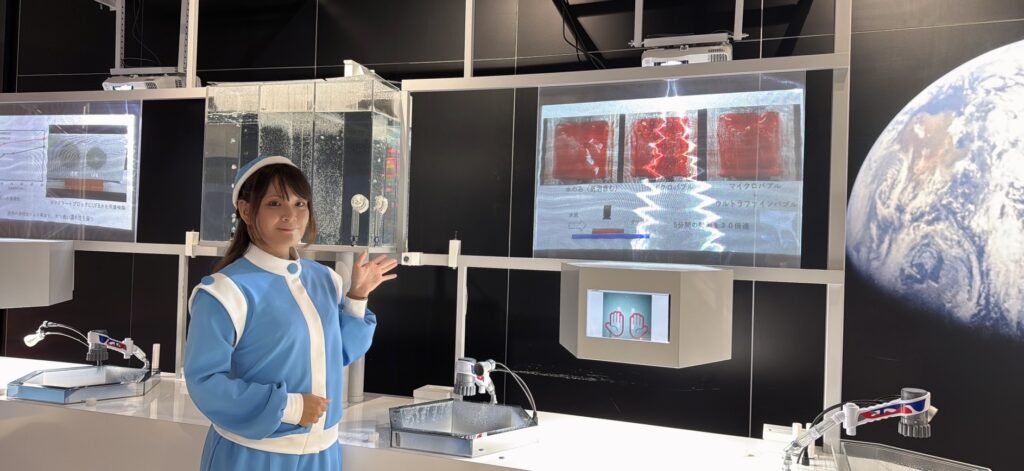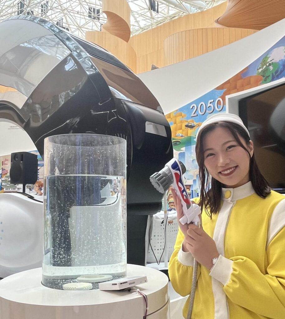 ・「人間洗濯機」については前の万博で展示されていた程度の知識でしたが、ファインバブル技術が環境にも人にも優しく洗浄できるということを、知識と実践を通じて体感しました。また、「ミライ人間洗濯機」は遠い未来の話だと思っていましたが、すでに家庭で使える技術になっていることに驚きました。