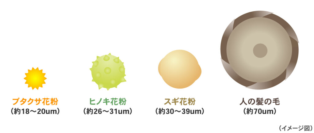 ブタクサ花粉は花粉の粒子がスギ花粉よりさらに小さく、その小ささは不織布マスクを通り抜けてしまうほど。体に付着しやすいだけでなく、気管に入ってしまい喘息のような症状を引き起こすこともあるそうです。