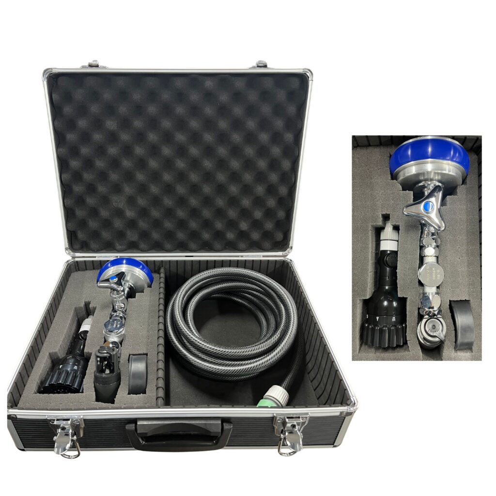 そして誕生したのが「火災現場除染キットMR1」。消防車に装着できるので、消防車から放出される水にファインバブルを生成し、 防火衣や装備品に付着した有害物質を効率よく洗浄してくれるのです。